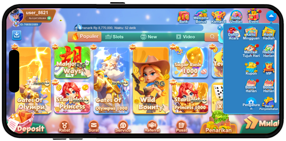 💥Note: If you finish the first VIP upgrade ( from VIP0 TO VIP1 ),then you can also get Rp10,000 extra reward !